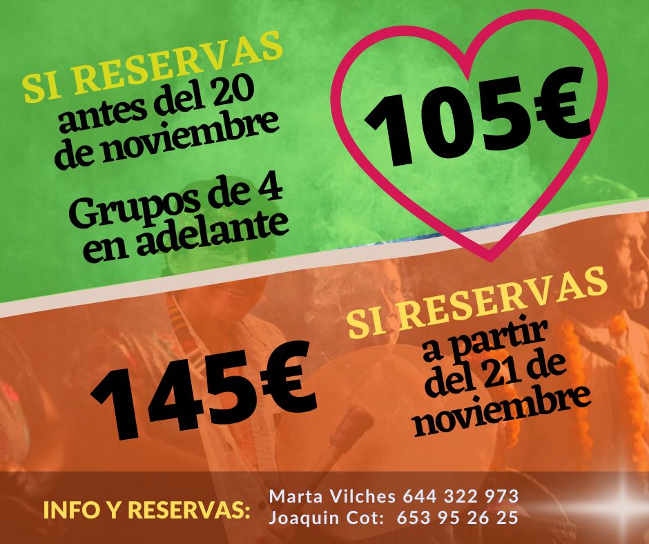 Para todos los hayan realizado su reserva antes del 20 de noviembre o vengan en grupos de 4 Personas.